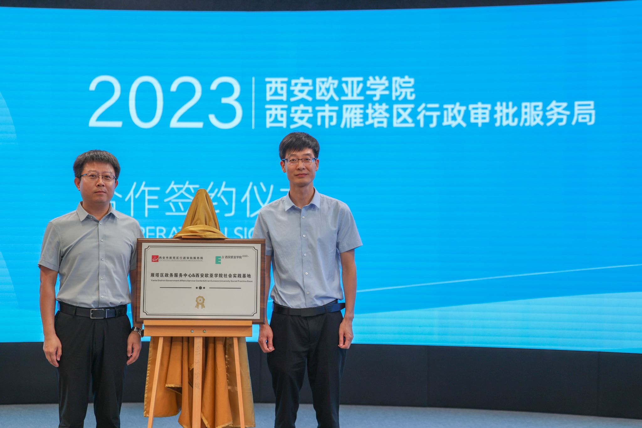 (图四)郭航主任与谢涛院长为“雁塔区政务服务中心·beat365手机版官网社会实践基地”揭牌