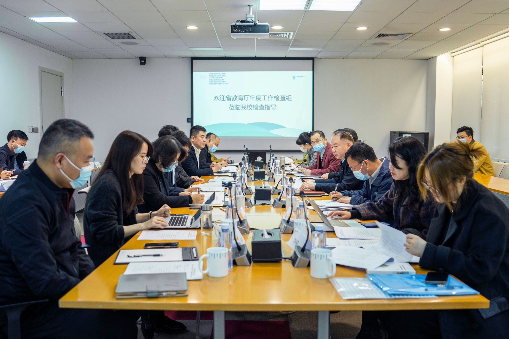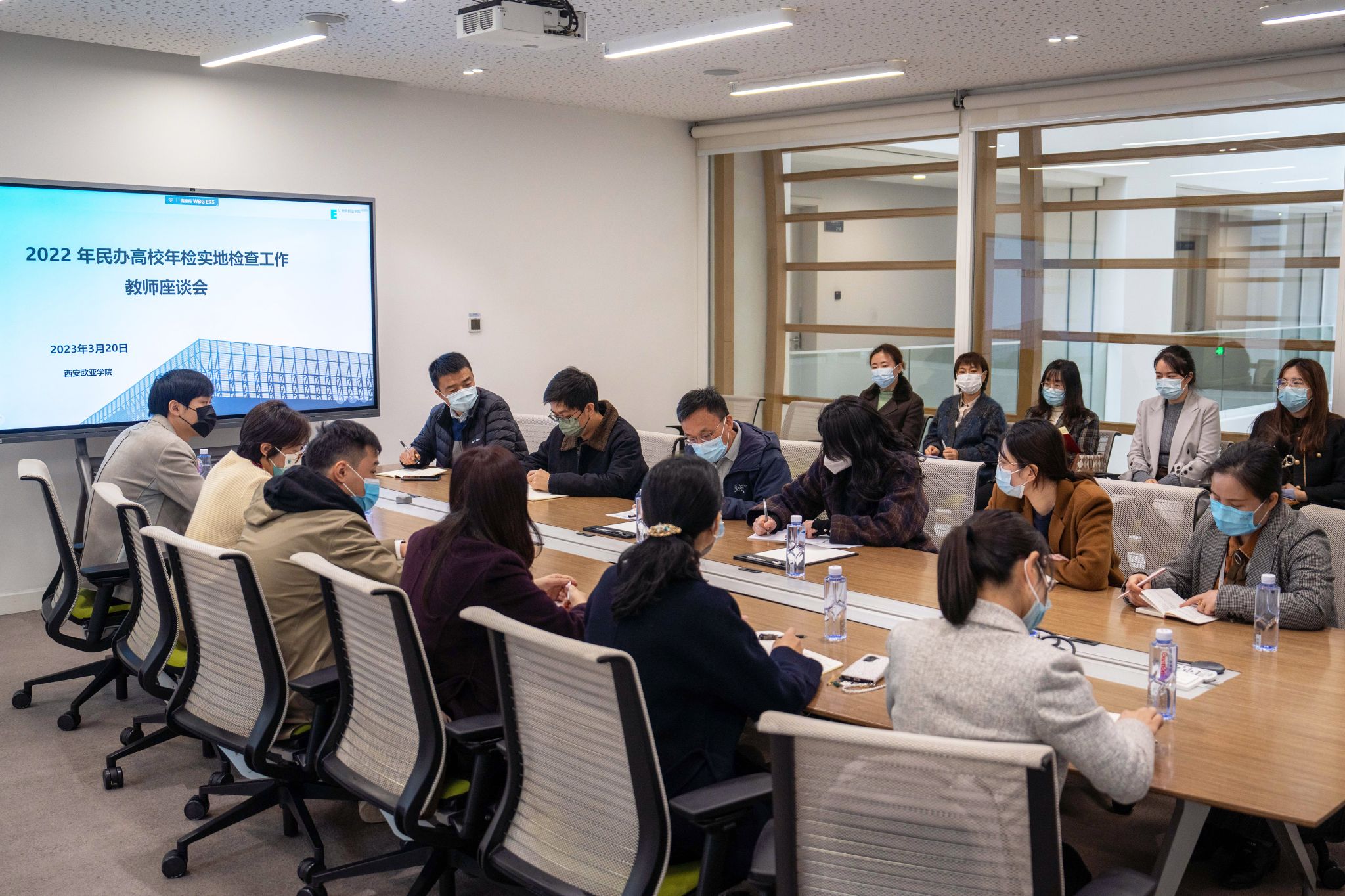 3月20日,陕西省委教育工委、省教育厅二级巡视员杨盛涛带队一行8人来beat365开展2022年度民办高校年检实地检查工作。校党委书记于孟晨,副校长李正,校长助理赵军镜、王艳出席会议,相关职能部门负责人参加了年检汇报会和反馈会。