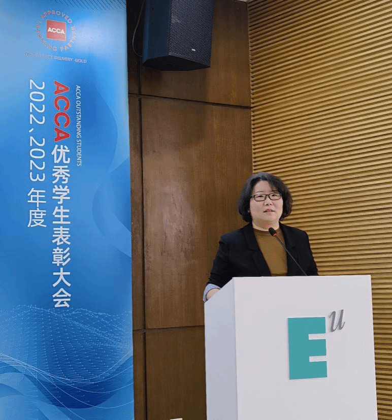 ACCA中心主任吴晓光教授演讲了《我们陪伴你成长》。吴教授回顾了ACCA中心在学校各级领导的支持和帮助下,以学生为中心,为欧亚ACCA学生提供了全国开办ACCA大学中得天独厚、独一无二的优秀的教学资源。由外教、博士教授和ACCA会员,以及本校优秀教师组成的ACCA教学团队为同学们提供了陪伴式的高质量教学服务。ACCA结课考试前和ACCA全球考试前,课程助教老师都会给同学们上辅导课,帮助同学们顺利通过ACCA的考试。全国首创的ACCA专用《财经英语》教材和ACCA课程教材学生都是免费使用的。欧亚为ACCA学生设置有优厚的奖学金,最高可获得1.3万元奖学金。欧亚ACCA机考点对欧亚的ACCA学生有极大的考务费优惠。这一系列的教学服务在全国开办ACCA的大学中都是独一无二的。