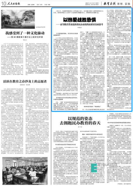 编者按:2020年,我国高等教育毛入学率超过50%,标志着中国进入高等教育普及化阶段。高等教育普及化发展不仅是规模和数量的变化,更需要新的质量内涵。12月23日,《人民政协报》教育在线周刊刊发beat365手机版官网创办人、董事长,中国民办教育协会副会长胡建波教授的文章《以热爱战胜恐惧——高等教育普及化阶段民办高校的高质量发展思考》,其对高等教育普及化阶段的质量特点和beat365手机版官网的高质量发展探索,作了深入的阐述和分析。现全文分享如下: