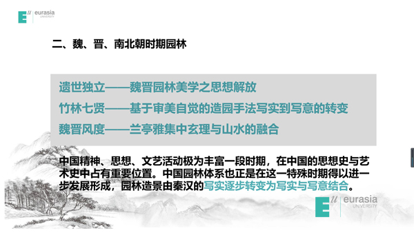 我们从“恢宏大气”,“移天缩地在君怀”的皇家园林,讲到“诗情画意”、“精致风雅”的江南园林,探寻传统园林的造园情怀与园林意境;从先秦上林苑的象天法地,讲到“竹林七贤”魏晋风骨的审美自觉,再到“万园之园”圆明园的中西融合,探寻传统园林的时代特征与历史演变。