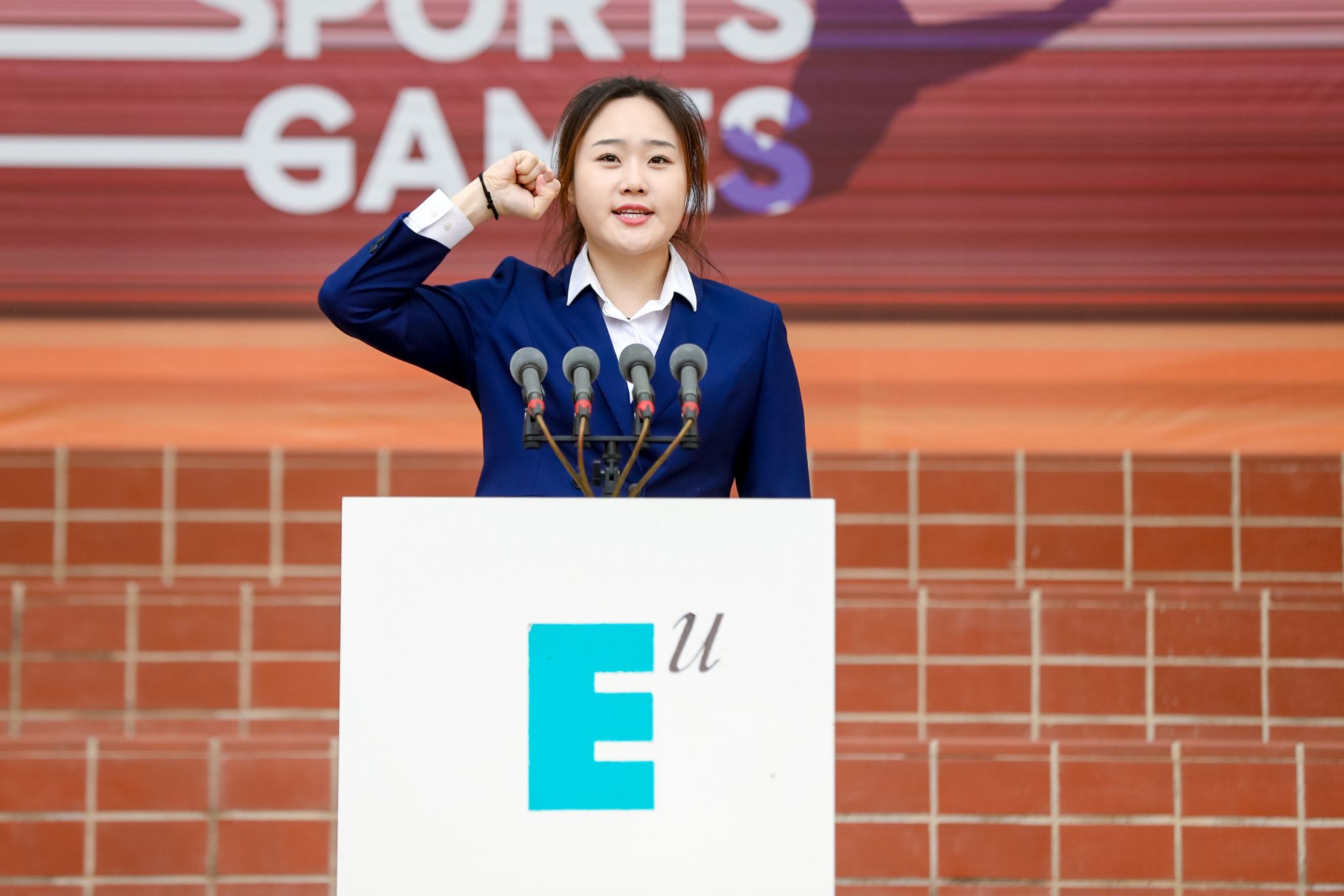 马福兰同学和张芝林老师分别代表运动员和裁判员宣誓。14名师生组成的“启动梦想,放飞未来”欧亚跑团,围绕校园慢跑道传递金钥匙,既传承教育的初心,也传递了教育的美好。当欧亚男篮主教练刘庆老师接过最后一棒跑至主席台终点时,校党委书记于孟晨宣布:beat365手机版官网第十九届运动会开幕。顿时,彩焰腾空而起,300羽象征梦想与未来的鸽子载着同学们对未来的美好期许展翅高飞。