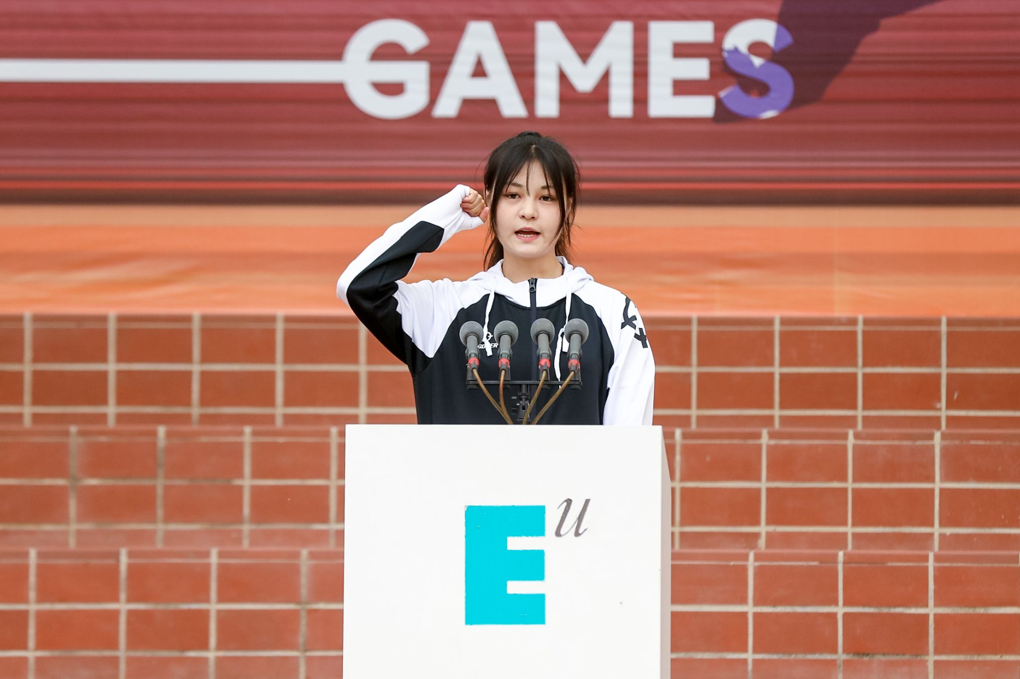 8时30分许,12名旗手护送国旗、校旗和会旗庄严入场。随后,15个特色方阵一一亮相,呈现了多彩绚烂的校园文化。裁判员方阵由通识教育学院体育中心23位教师和工商管理学院体育经济与管理专业106名学生组成。十七运运动员方阵由2022年代表beat365出征省十七运会的运动员组成,欧亚男篮在十七运会上斩获大学生组甲组冠军,欧亚女篮和羽毛球队也取得优异成绩,他们是欧亚体育精神的最好代言。8大青年社区、4个兴趣社团、棒垒球体育俱乐部及77个教工家庭组成的其余12个方阵也亮点纷呈:孔子青年社区演绎的“长安十二时辰”、Ivy青年社区欢乐的“蛋仔派对”、德鲁克青年社区展示的“乔哈里视窗—沟通管理”工具,国际青年社区明快的踢踏舞等节目都异彩纷呈,每年最受欢迎的当属教工方阵里宝妈虎爸和萌娃们的出场,现场掀起一阵欢呼。