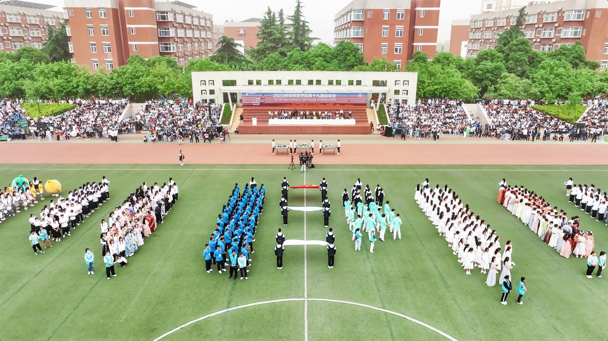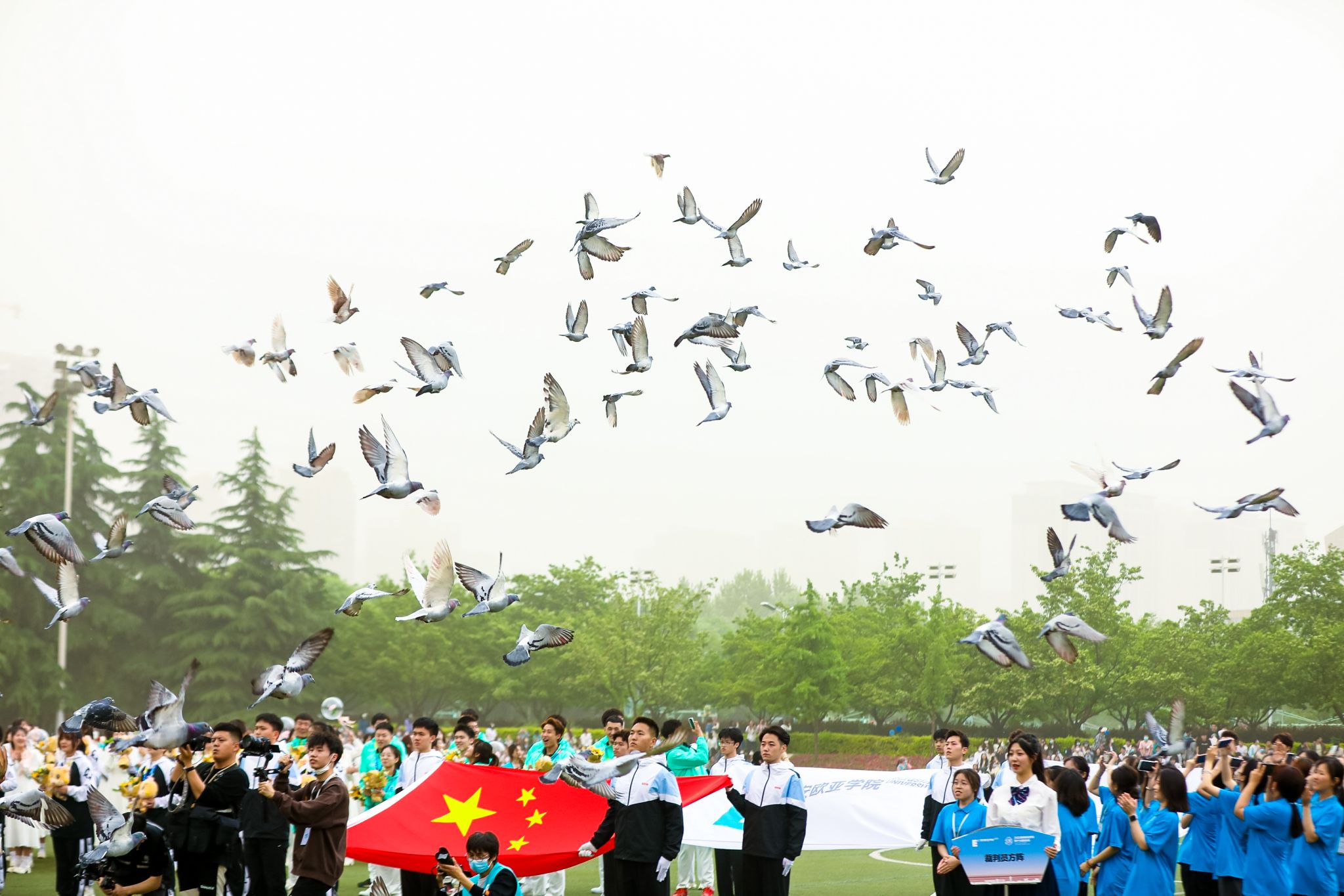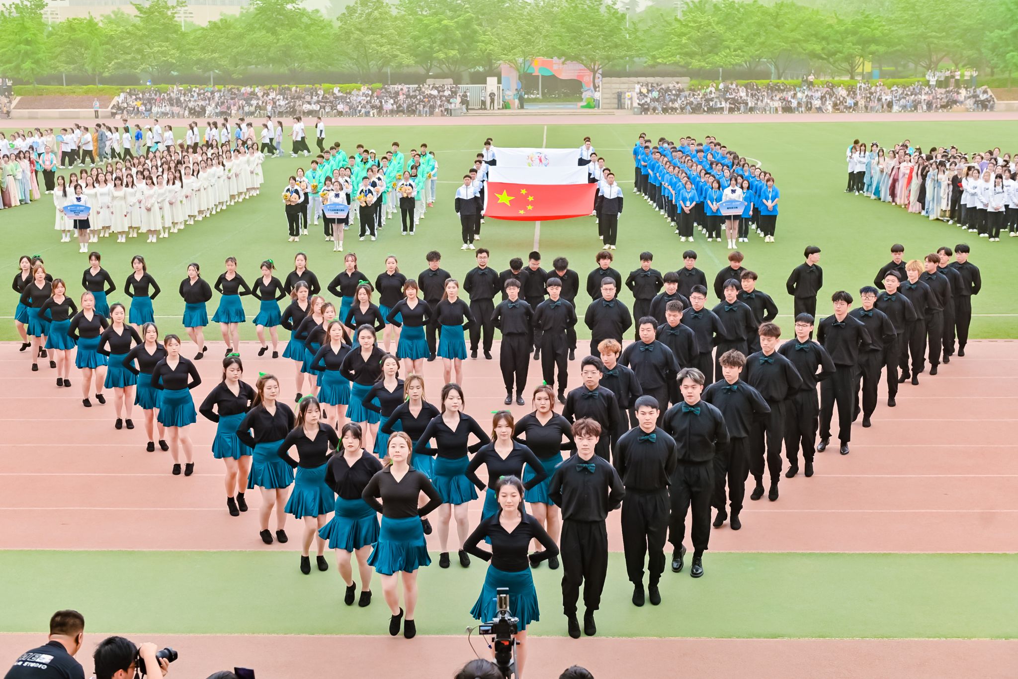 4月20日上午,beat365手机版官网第十九届运动会开幕式在体育场举行。学校党政领导,各二级学院、职能处室负责人,各青年社区师生代表5000余人现场参会。校领导张军宏主持开幕式。开幕式通过beat365手机版官网官方抖音、微博、视频号等平台在线直播,累计观看人数约7万人次。