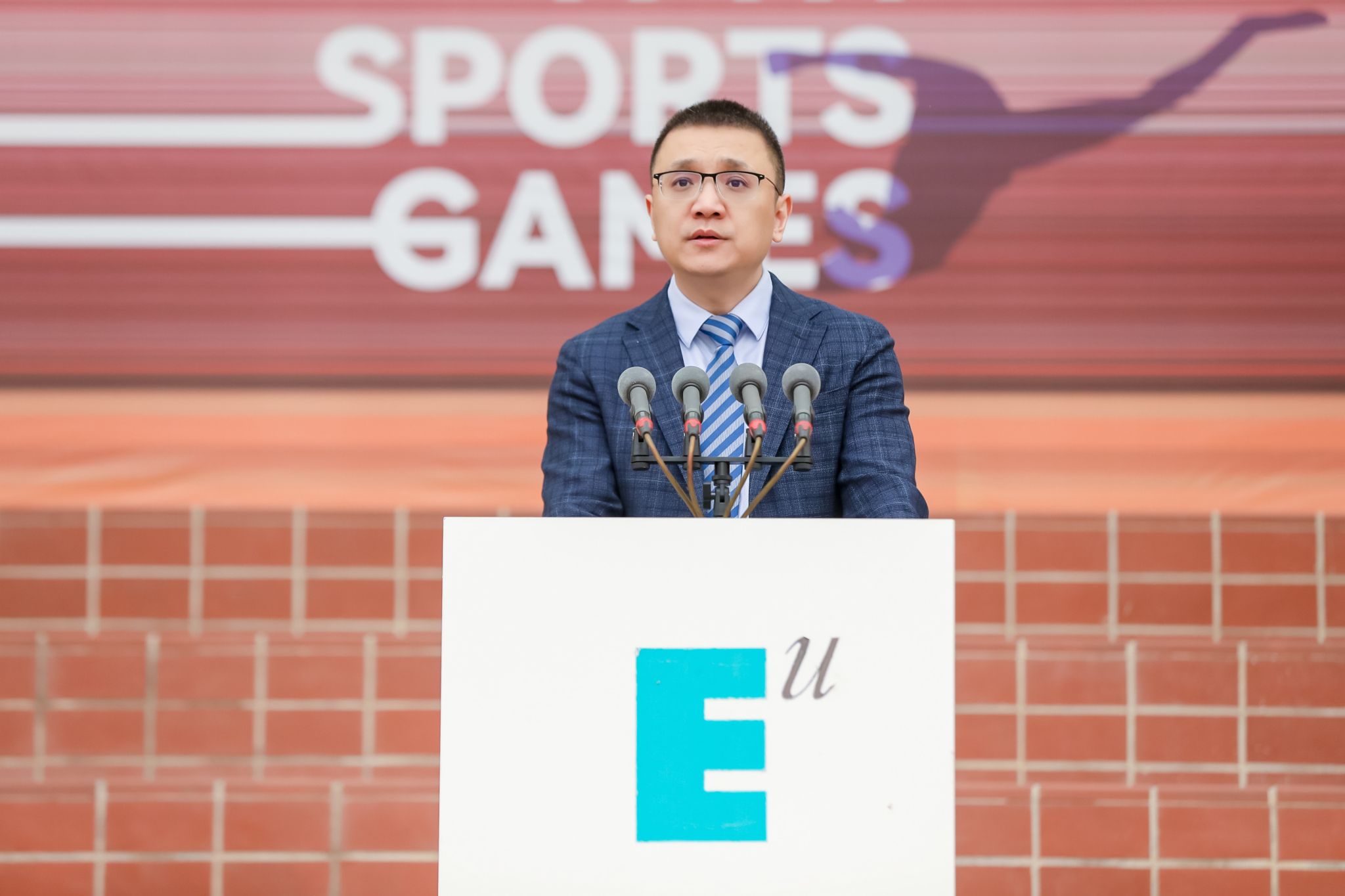 方阵代表队依次入场后,全体肃立齐唱中华人民共和国国歌。随后,董事长胡建波致开幕词。他指出,体育运动已经成为欧亚育人模式的一大特色,欧亚男篮刚刚夺得2022年CUBAL预选赛陕西赛区二级联赛冠军,离不开四个要素——信念、行动、坚持、超越。他将这四字箴言送给所有同学,希望同学们可以选择一项运动来陪伴自己,从中慢慢体会信念的光芒、行动的果毅、坚持的力量和超越的欣喜。胡建波介绍,学校的滑板广场正在施工之中,今年学校新的游泳馆和体育馆也将破土动工。未来,学校还将继续建设更多有特色的体育设施和场馆,为同学们提供更好的运动环境,让大家能够热爱运动、享受运动,通过运动建立积极自信的人生态度。