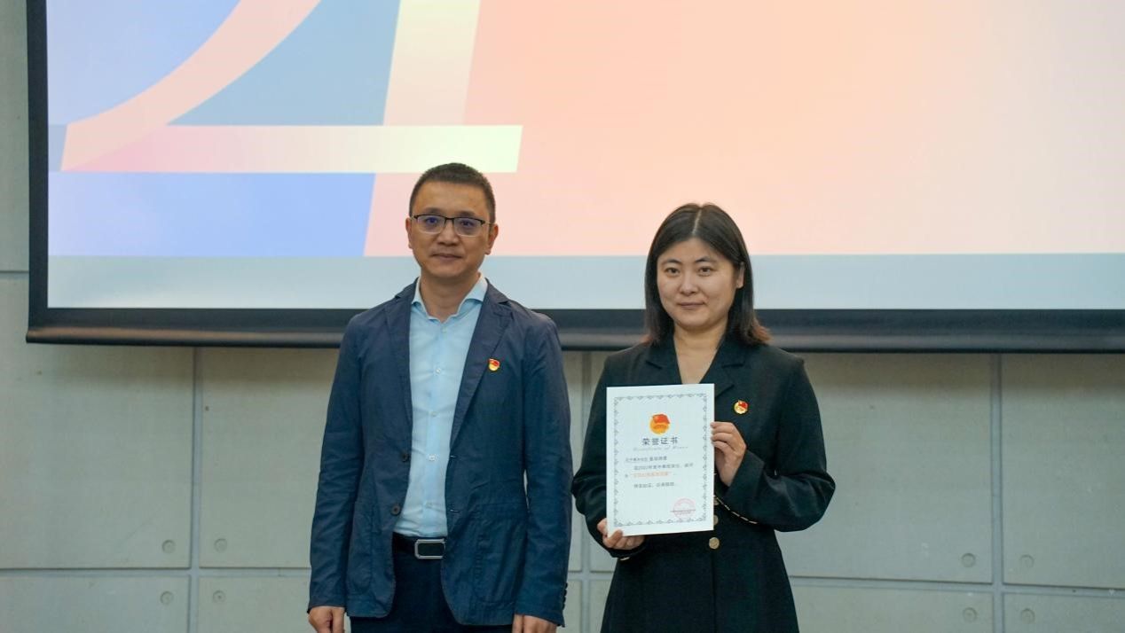 (图十三)第一青年社区分党委书记范贞静颁发“优秀共青团员”奖