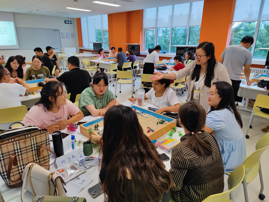 本次培训中,寇延老师为学员们带来了“箱庭疗法的基本原理与应用”。箱庭疗法是非常适用于儿童的一种表达性艺术治疗方法,箱庭疗法的治疗重点是咨访关系,在自由与受保护的空间,儿童用沙、水和玩具进行创建性的表达。儿童通过象征性的方式表达内心世界,从而获得疗愈。此次培训中,学员们通过个体箱庭和团体箱庭的体验,感受到了“箱中小世界,心中大宇宙”。