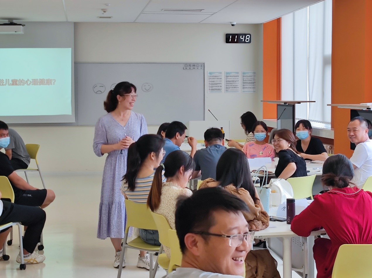 解开儿童心理的密码需要要透过现象了解影响儿童心理发展及心理健康的因素。苏淑英老师从关系角度出发,阐释心理健康的影响因素。学生心理问题的形成是多元的,受到自身个体差异的影响、家庭的影响、同伴关系的影响、教师的影响和媒体影响,各个因素之间不是单独发挥作用,而是各因素之间不断耦合和交互作用共同影响着学生的心理健康。同时,苏老师还解读了《2022年国民抑郁症蓝皮书》,让教师更好的掌握抑郁症的引发原因、抑郁症在小学生群体的占比、抑郁症的诊断标准等,帮助教师更好的理解小学生群体的心理问题。在讨论环节中,学员们分享了自己的感想以及在教学中遇到的问题。