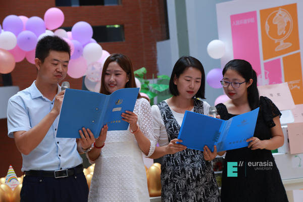 接下来,最感人心弦的环节进行了开场,主持人杨光老师谈及自己在欧亚已有8年的工作经历,令人感慨。但更令人钦佩羡慕的是人居环境学院的17位光荣老师:
