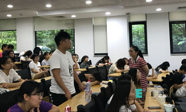 (图一)财务管理课程中心邢凯华老师在创新意识训练营与学生互动