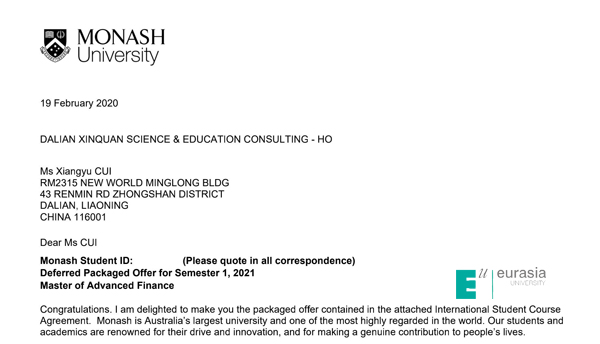 03崔翔宇 录取学校:莫纳什大学