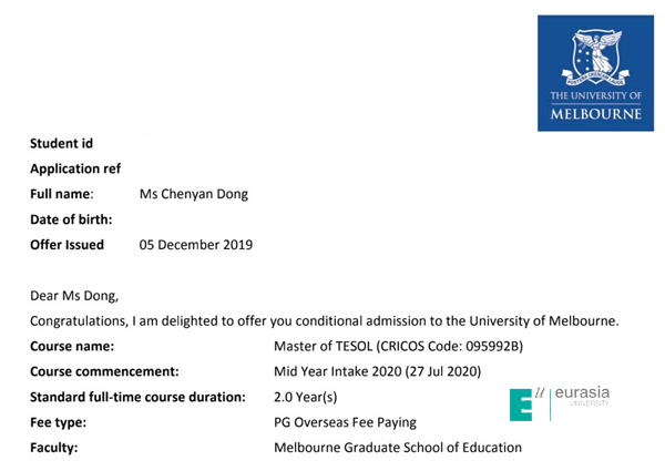 02董晨妍 录取学校:墨尔本大学