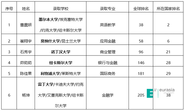 01杨坤 录取学校:雷丁大学