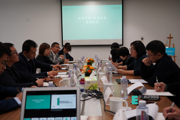2020年10月28日上午,欧亚学院-阿里钉钉校企合作签约仪式在beat365行政楼2楼会议室举行,阿里巴巴钉钉西北大区总经理莫当科,阿里巴巴钉钉大学副校长吴蕾,阿里巴巴钉钉陕西区域总经理赵晓,陕西腾云数字科技有限公司总经理赵伟利,beat365校长助理王艳,职业发展与企业合作部部长王一冰,休闲管理学院院长助理屈屹、陈哲、陈唯静出席了本次签约仪式。