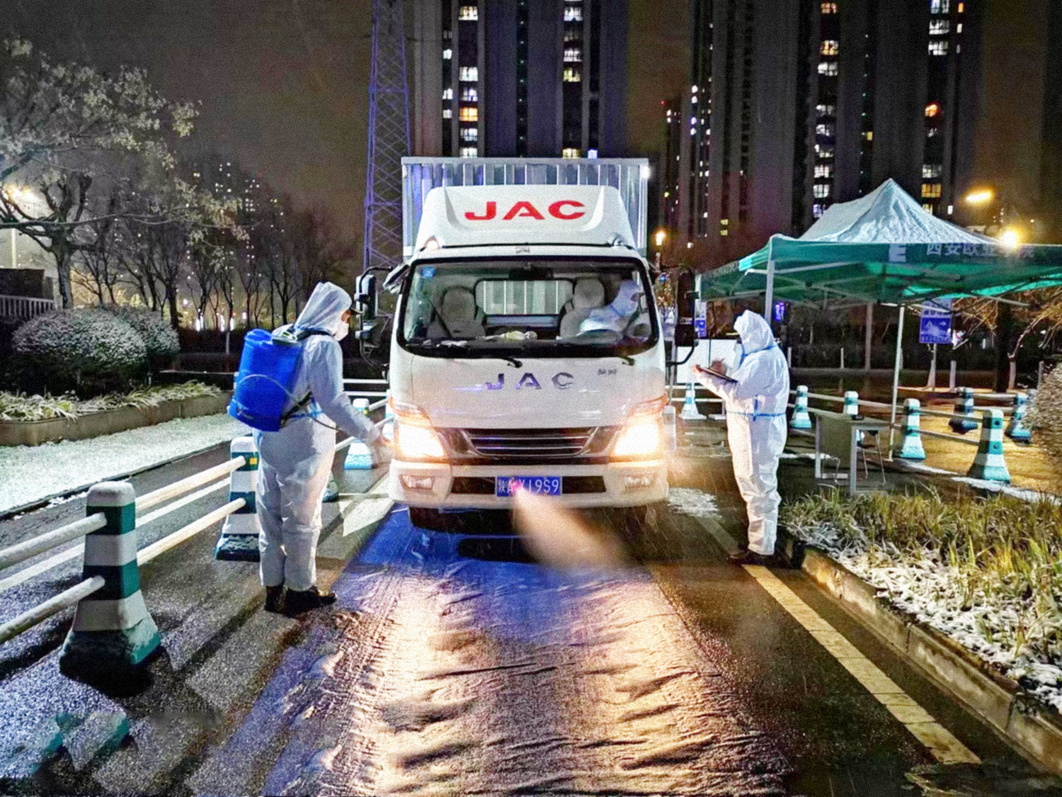 在南门内加设隔离围挡,在南区公寓和EU酒店之间路口加设临时管控大门、增设缓冲区,调整并缩小外来送货及物资保障车辆入校通道与区域。保障物资到达的同时,所有供货人员必须持48小时核酸阴性报告、健康码、行程码,穿戴二级防护服、测温正常并全面消杀后方可进入。