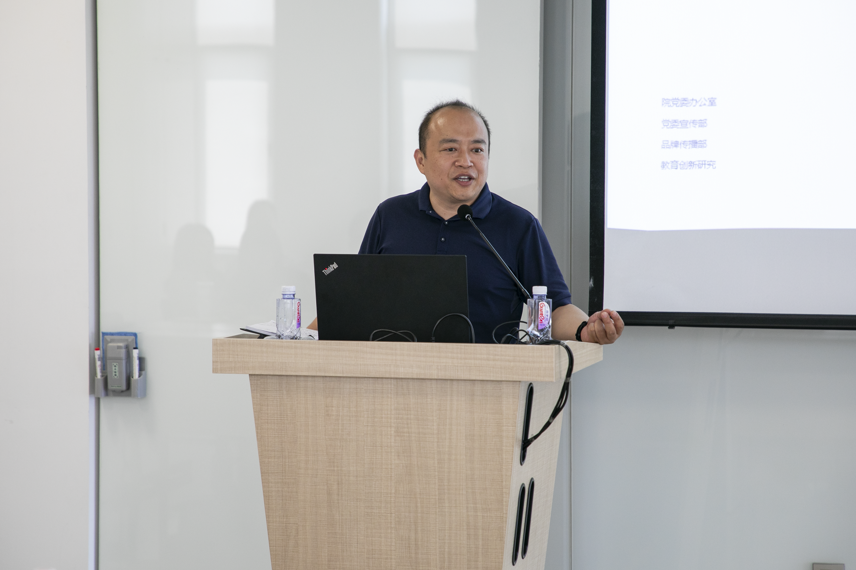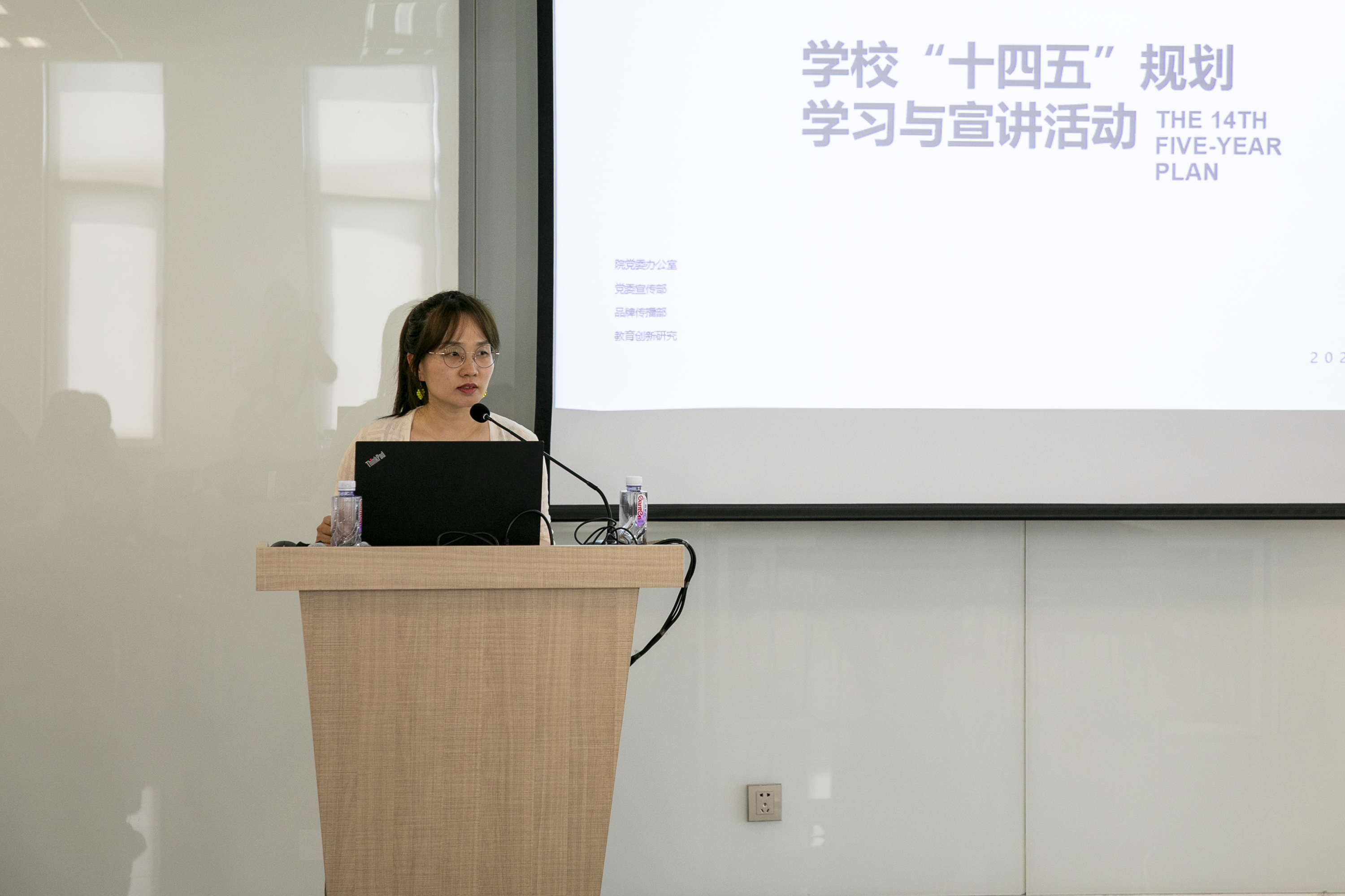 图文信息中心主任罗征宣讲了学校“十四五”发展总体规划、教育创新研究院院长助理赵健、品牌传播部副部长张媛媛、党委办公室主任赖志彬分别结合部门工作报告了规划落实思考。会议由品牌传播部部长助理李娇主持。