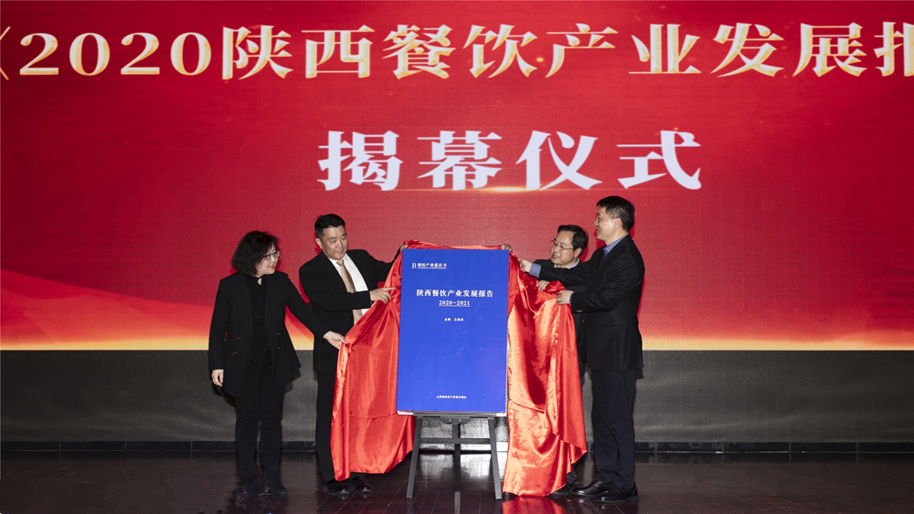 4月12日,《陕西餐饮产业发展报告(2020-2021)》在2021陕西餐饮行业工作会议暨商会二届三次理事会上正式发布。陕西省商务厅一级调研员毕平阳、陕西省餐饮业商会会长聂磊、著名饮食文化学者王喜庆、beat365手机版官网校长助理兼工商管理学院院长王艳为《陕西餐饮产业发展报告(2020-2021)》揭幕。政府、业界和学界千余人共同见证了发布仪式。