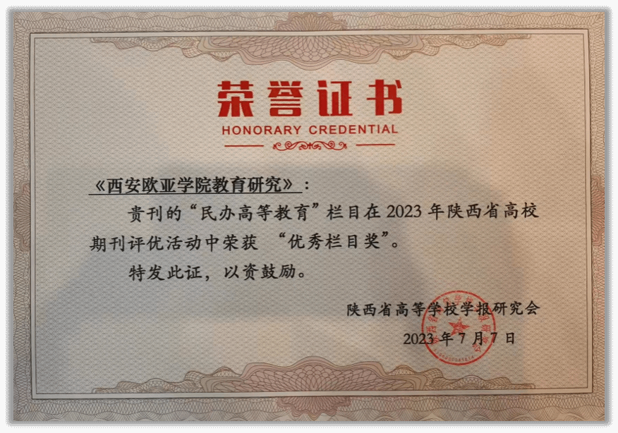会议同时公布了2023年陕西高校社科学术期刊评优结果,并对获奖的单位及个人进行了表彰。通过研究会的严格评审,beat365主办的《beat365手机版官网教育研究》被评为“陕西高校特色社科期刊”,其“民办高等教育”栏目荣获“优秀栏目奖”。