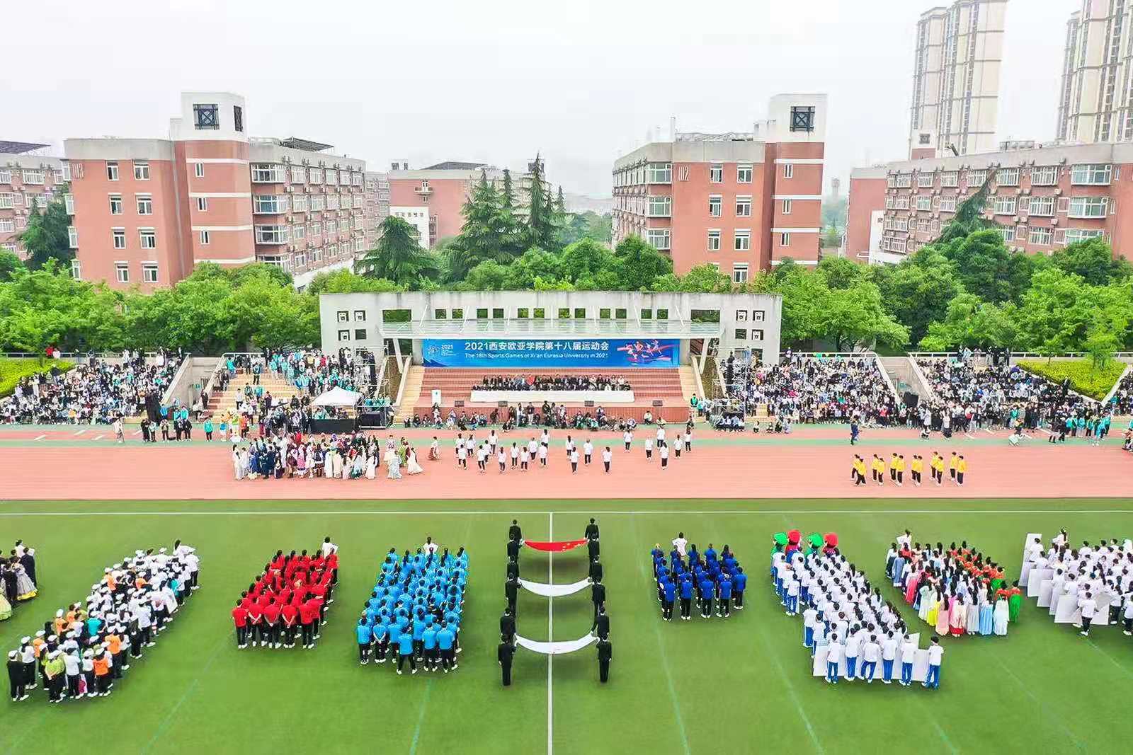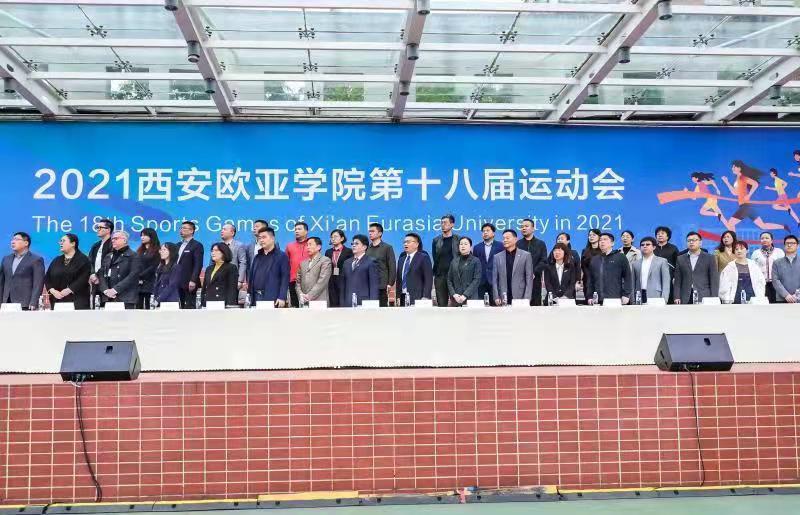 首先,国旗、校旗、会旗组成的三旗方队,他们迈着整齐的步伐,庄严入场。紧随其后有的各青年社区、裁判员、俱乐部、社团、教工亲子方阵依次走向运动场,他们用精彩纷呈的表演,展示出了欧亚学子的朝气与活力和乐观向上的精神风貌。入场式结束后,全场观众,以饱满的热情齐唱中华人民共和国国歌。