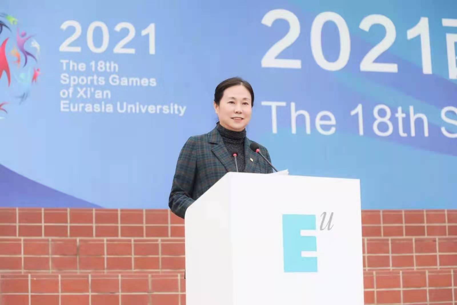 校长刘瑾教授致开幕词。她表示:“今年,恰逢全国第十四届全运会在陕西省举办,欧亚此次的运动会,不但是展示欧亚学子运动风采的嘉年华,更是发扬此次全运会“全民全运,同心同行”的精神风貌。崇尚体育精神、重视体育育人是beat365多年来对学生发展理论研究和体育课程改革实践的结果。自2014年开始,学校体育与健康课程中心便尝试进行系统的课程改革,将传统意义上的体育课,转变为基于兴趣而组建的俱乐部。同学们在俱乐部中不仅能够培养一项终身受益的体育爱好,更会在老师们的指导下,参与俱乐部的管理、竞赛队伍的组织,并在管理和组织中锻炼自身的领导力。学校连续十一年开展了“四季欧亚”春季健康体育节活动,各青年社区也举办了校级体育联赛,越来越多的同学们参与到不同的体育运动中,“让运动成为生活方式”已经深入欧亚人的内心,并成为我们的生活态度和追求。预祝本次运动会圆满成功,预祝老师们和同学们都能在本届运动会中秉承着“更高、更快、更强”的体育精神,再创佳绩,并享受运动的快乐!”