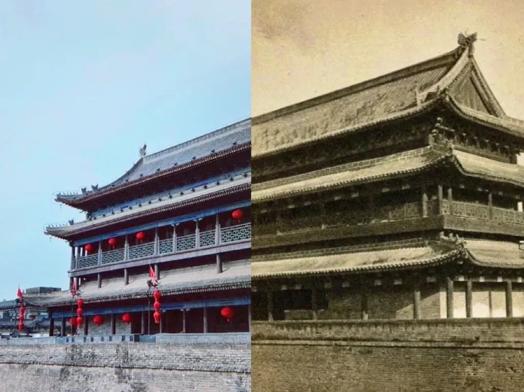 作者阐述:通过寻找西安城内的标志性建筑及景点,例如,城墙、回民街、钟楼等,进行古今对比。一边溯源着历史的古建筑,一边发展着迈向世界的商务区,利用老照片进行对比拍摄、拼接,展现新时代新西安的繁荣与富强。