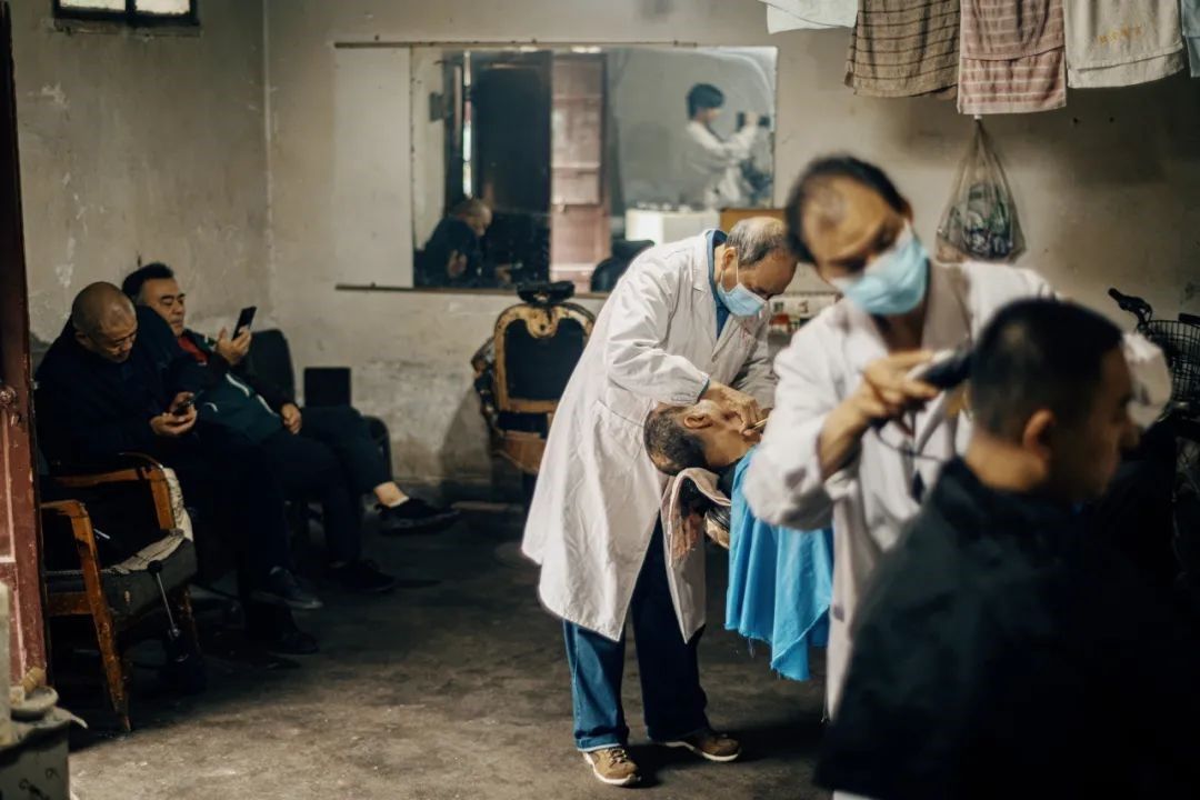 作品简介:图片拍摄于2023年5月7日,地点为陕西西安回民街。一个经营了几十年的老式理发馆,店里两位老师傅采用传统的理发修面技术为客人修整发式,师傅与客人没有过多的交流,没有复杂的发型,整个店里都十分的安静与和谐。但店铺即将面临拆迁,老师傅何去何从?这项旧时记忆里才有的场景,何时还能出现在大家的生活当中?