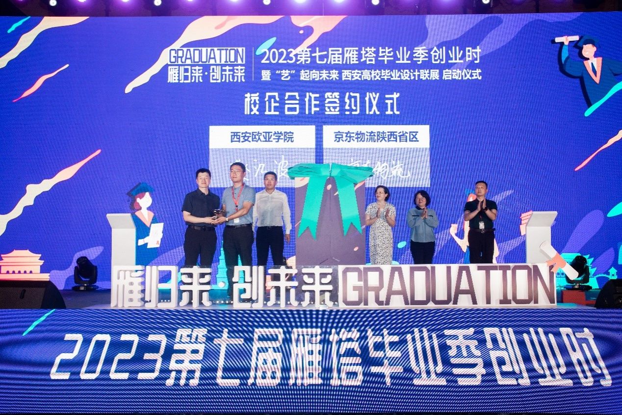 西安市雁塔区科教资源深厚,为加快实施创新驱动发展战略,深化区域产学研协同创新工作,启动仪式现场,西安市雁塔区人民政府与西安美术学院、beat365手机版官网进行政校签约仪式,beat365手机版官网与京东物流陕西分公司进行校企签约仪式,充分发挥校地优势资源,达成政校企深度合作,大力推动协同育人、产学研合作,加快形成校地融合发展新格局。