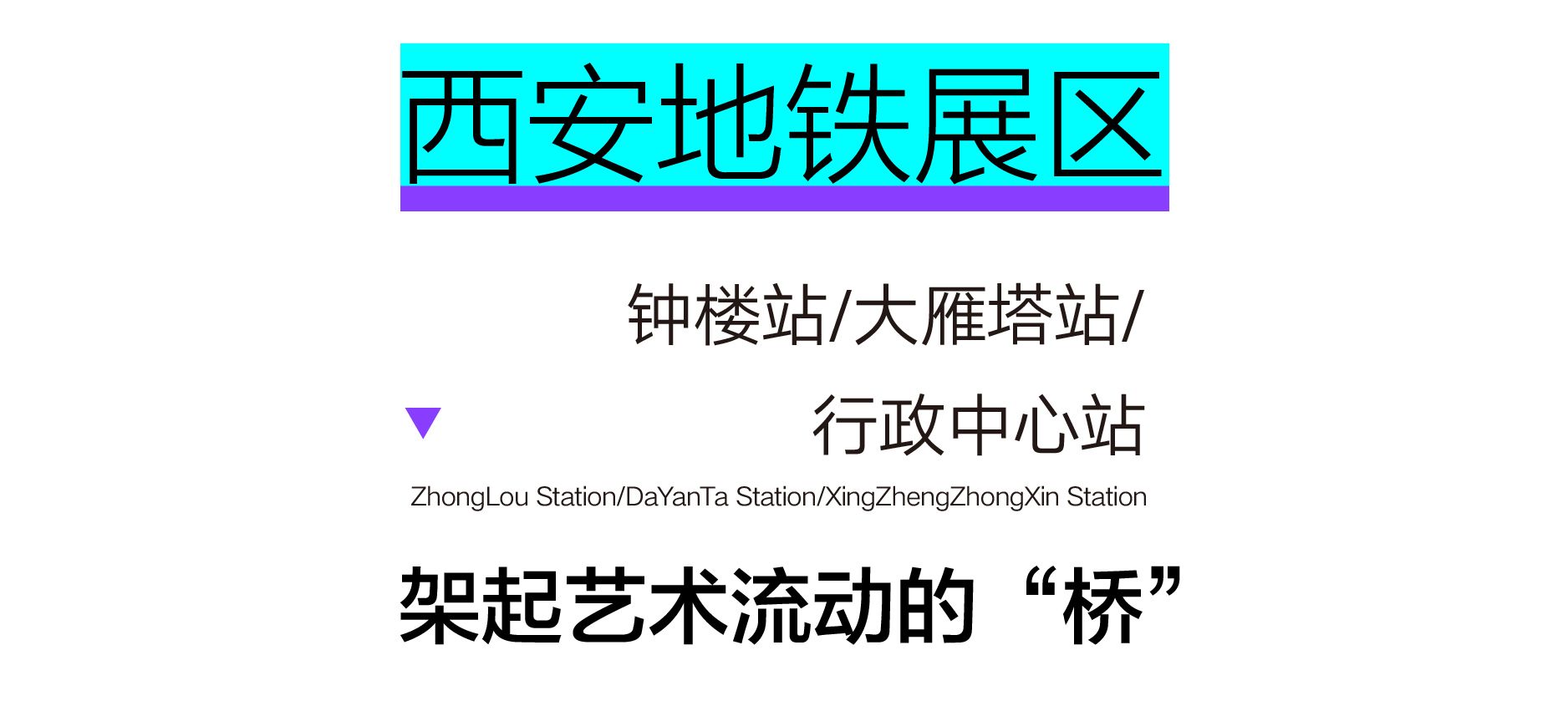 地铁展区围绕陕西丰厚文化与历史资源,共设三个站点:钟楼站/大雁塔站/行政中心站,打造自然环境、城市景观、陕西方言、运动潮流四大展览主题,将陕西多元文化内核与城市风貌传递给更多市民、游客,传递至城市内外。