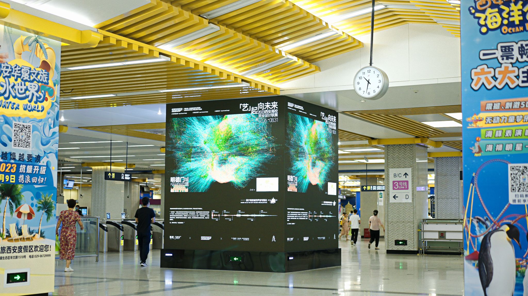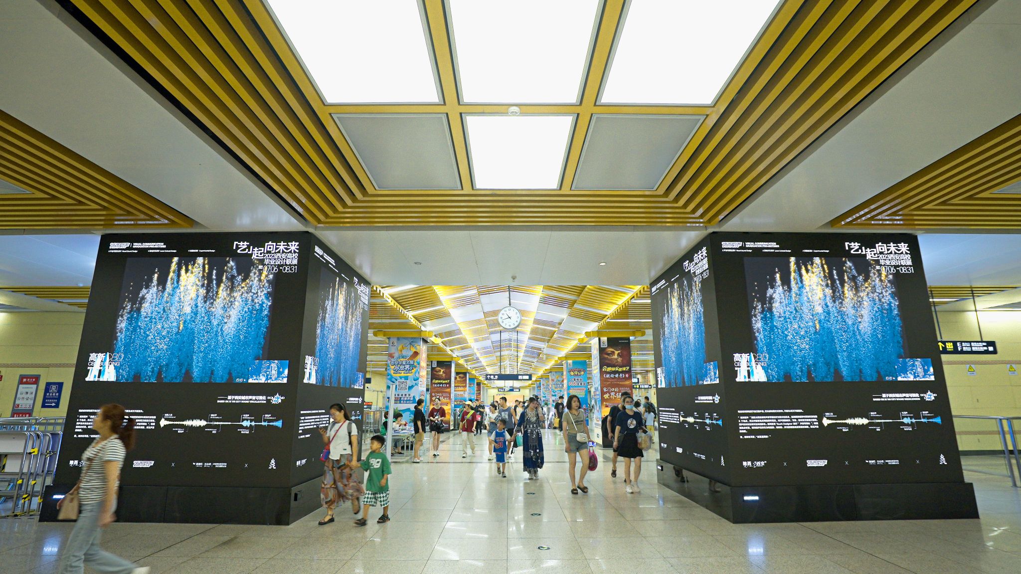 「艺」起向未来 2023西安高校毕业设计联展依托西安城市生活地标空间:西影电影园区与西安地铁空间,打破艺术与生活的界限。开展当天,新生设计力量对于社会元素的创意表达吸引了众多观众及游客驻足欣赏并打卡,体验沉浸式城市设计文化。
