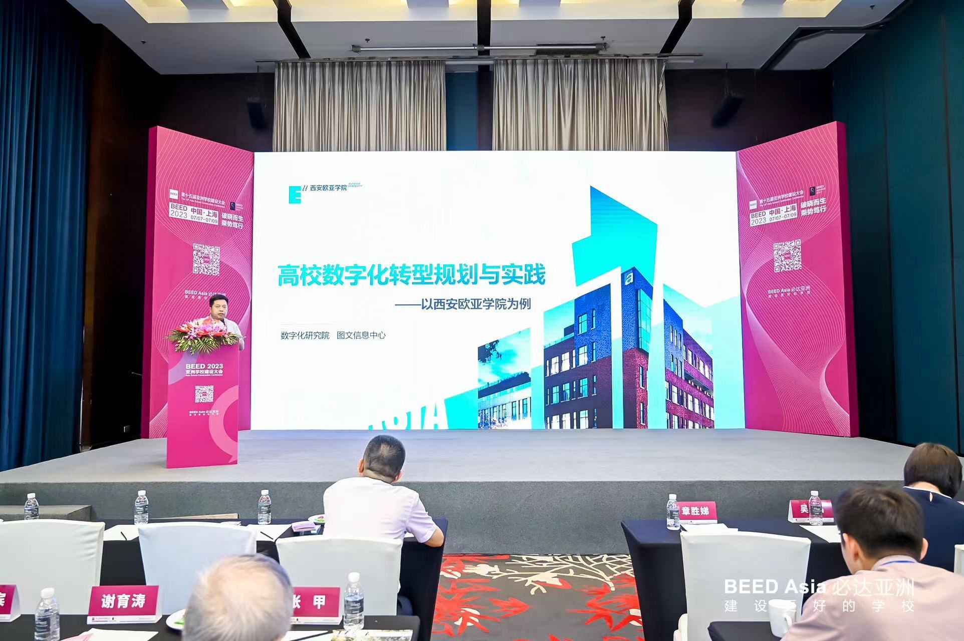 会议由8场主题论坛组成,分别为:「创新·打开教育新格局」、「国际教育发展新动向」、「重塑·未来学习空间建构」、「优化升级,学校运营与管理」、「高等教育改革新路径」、「专业成长,未来教师发展」、「转型·拥抱数字化变革」、「绿色可持续,校园新未来」。beat365图文信息中心主任罗征受邀参会,主持「转型·拥抱数字化变革」论坛并分享了题为《高校数字化转型规划与实践——以beat365手机版官网为例》的专题报告,受到了一致好评。