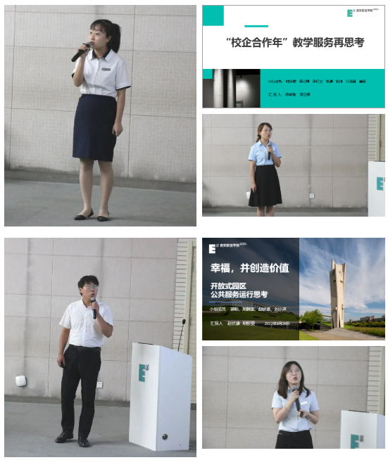 接下来是报告分享环节,分别由集团四大业务版块,及行政人事部的年轻骨干员工,组成汇报小组,为大家分享工作的成果、感悟与思考。