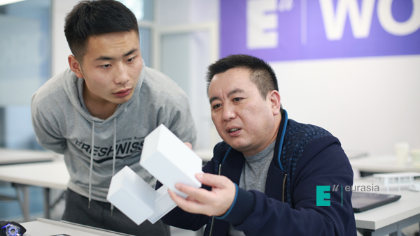 11月22日,同学们在工作坊组装自己亲手画出来的模型,欢乐而积极的学习气氛中,参与体验的每一个人,真正体味到了“做中学”。在工作坊,在人居环境学院,在欧亚,学习比玩乐更轻松!
