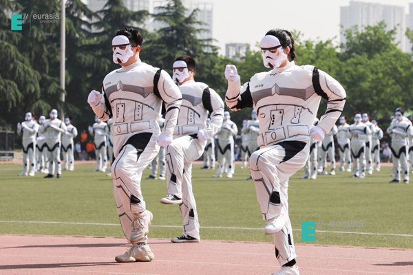 最后为我们带来视觉盛宴的是各个社区和通识教育学院精心准备的大型团体操项目,伴随着欢快的节奏,轻盈的舞步。团体操以其特有的活力与魅力展示了欧亚学子的朝气蓬勃,也淋漓尽致的诠释了学子们的风采。