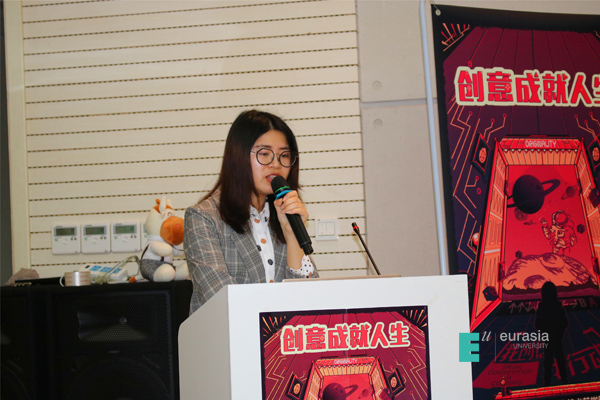 广告人文化集团市场总监孙明晖女士为在场同学们介绍学院奖的奖项设置,讲解参赛策略,并带来“涂缓缓”首届“关爱女生”公益行动宣传,引起了现场同学们浓厚的兴趣。她表示:“此公益宣传是为了让健康更科学。”