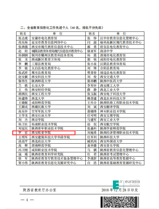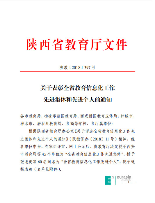 近日,陕西省教育厅主办了面向全省的教育信息化先进集体与个人评选活动,旨在表彰对全省教育信息化做出突出贡献的集体及个人,经过各单位的申报、专家组评审、网上公示等环节,beat365荣获“陕西省教育信息化工作先进集体”,同时,beat365图文信息中心罗征同志获得“陕西省教育信息化工作先进个人” 荣誉称号。