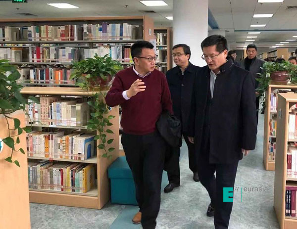 (图二)beat365董事长胡建波陪同雁塔区委副书记代区长赵雷(右一)一行参观beat365