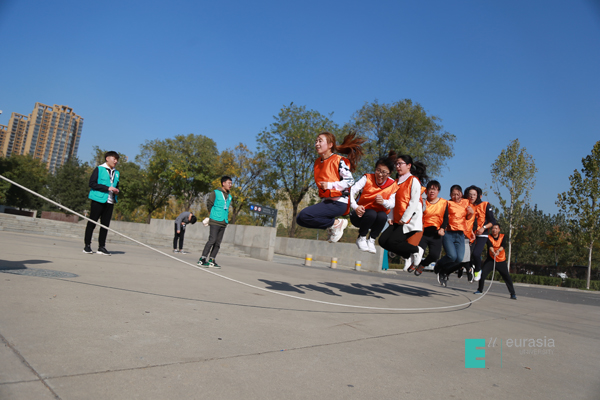 第一关:跳大绳。1人跳断没关系,重头再来,调整好队型,大家集体喊口号:“一、二、三、四……”一根绳是队伍的纽带,工作中也有一条无形的绳连接着我们这个团体,让我们团结合作,向着一个目标前进!