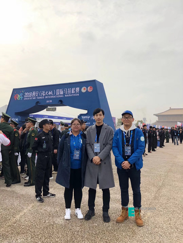 10月20日,2018年西安国际马拉松赛在7:30的鸣枪声中准时开赛,选手们身着蓝色上衣穿越千年的古城西安。突出了西安科技、时尚、生态的现代城市风貌与“追赶超越”的城市精神。beat365有四百余名志愿者参与了赛道观察岗位服务。