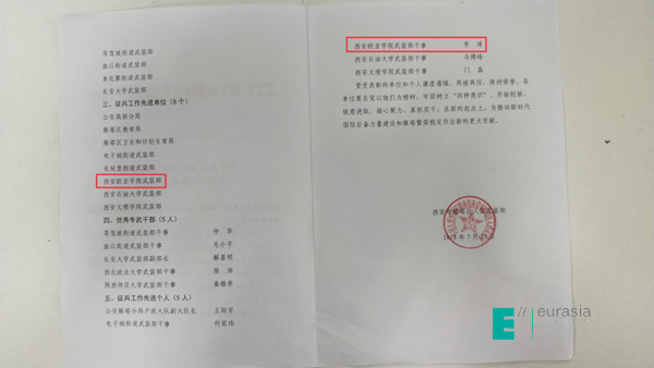 (图四)荣获雁塔区人民武装部2017年度征兵先进单位
