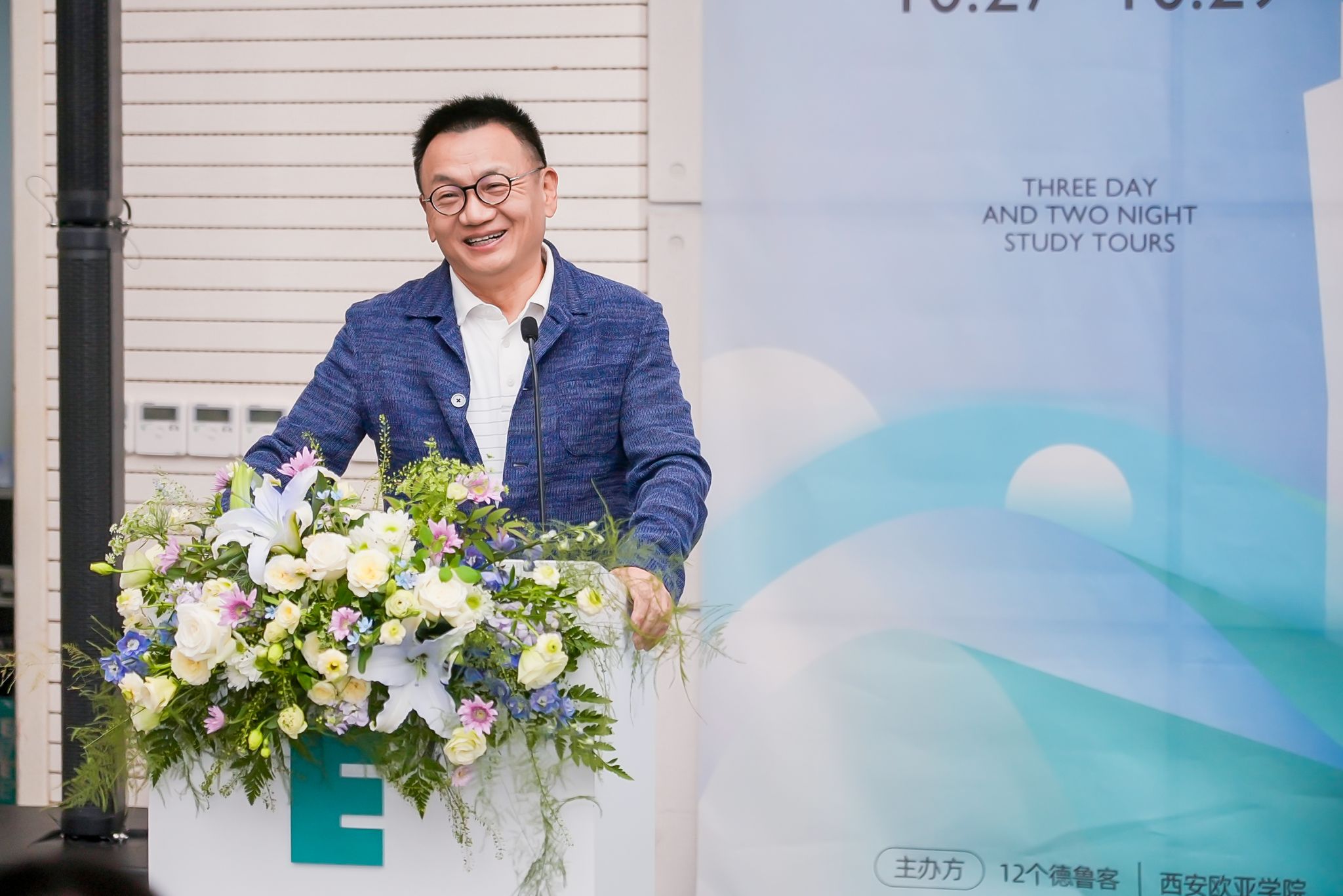 由12个德鲁客系列主题公开课负责人张颖老师主持的开营仪式上,特邀东道主beat365手机版官网董事长胡建波教授致欢迎辞。胡建波董事长向参会的企业家、校友、教师表示热情欢迎。他说,此次游学活动的举办缘起自身十余年德鲁克思想的学习研究,拜读过杨无锐老师研究德鲁克思想的文章,之后又带队聆听杨无锐、康至军老师为期3日的《德鲁克论管理的底层逻辑》公开课,受益颇深。