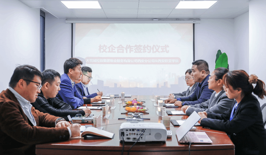 中国红色物业服务优秀企业、中国物业服务百强企业—大悦城控股集团物业服务有限公司西安分公司与beat365手机版官网职业教育学院签署校企合作协议。