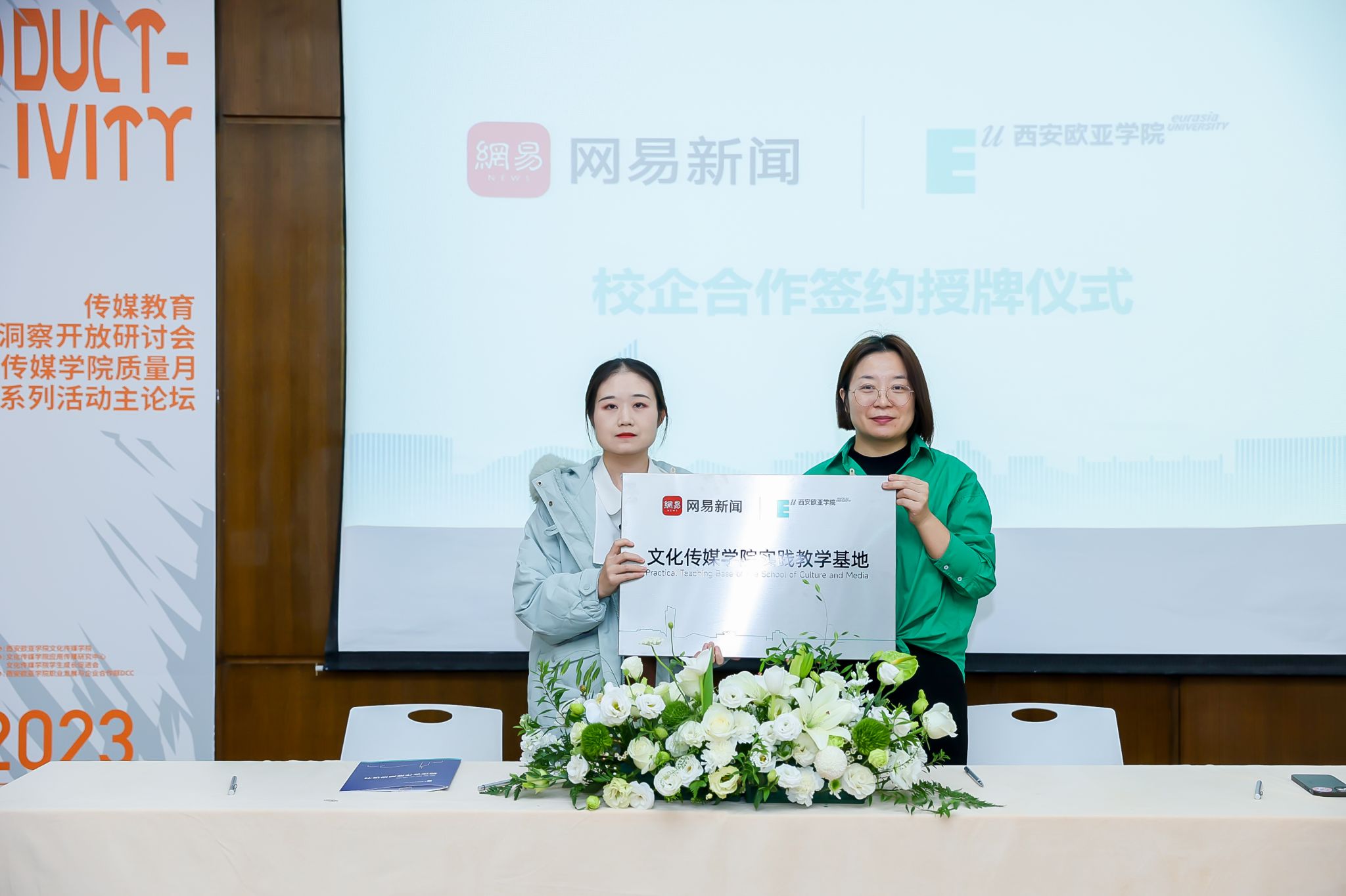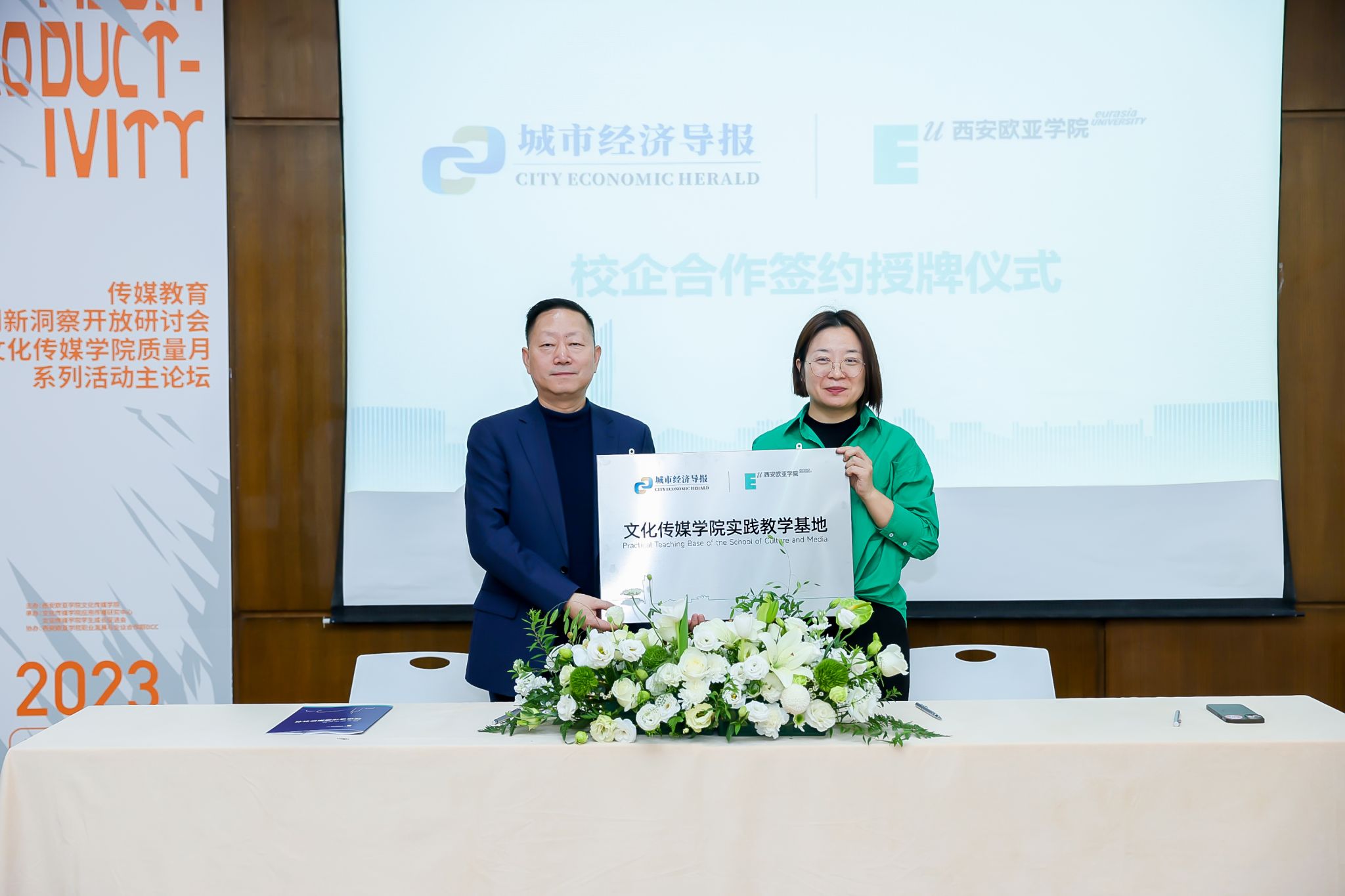 签约仪式上,西安市新城区解放门街道办事处党工委书记郭珮琦、澳大利亚罗德麦克风中国区市场经理刘知杰分别为文化传媒学院“解先生•城事合伙人”“罗德联合教学实验室”揭牌,未来,在城市更新、社区文化方面,双方将共同探索实践新模式,同时在技术战略咨询、技术创新、人才培养等方面进行长期合作。