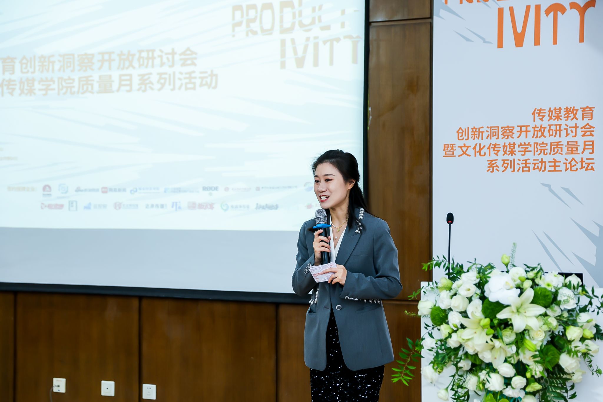 立足于文化传媒学院四大专业——新闻学、网络与新媒体、数字出版、广播电视编导,曹小娟指出学院人才培养密切关注“数字经济需求下的特色培养”以及“服务区域文化经济发展需求”,在产教融合领域中,不断为社会输出高质量应用型传媒人才与专业化的文化传媒产品,实现集群融合。