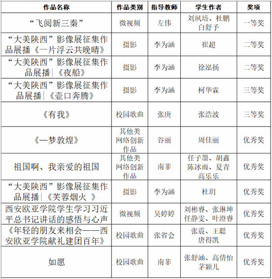 按照《中共陕西省委教育工委、中共陕西省委网信办关于开展第六届陕西高校大学生网络文化节和网络教育优秀作品推选展示活动的通知》的要求,学校党委宣传部在全校范围举办“青春献礼二十大,强国有我新征程——我们这十年”优秀网络文化作品、优秀网络教育作品征集展示活动。将作品征集与日常教育教学、品牌建设、文明校园创建等工作有机结合起来,积极组织校团委、各分院和青年社区踊跃上报优秀网络文化作品。