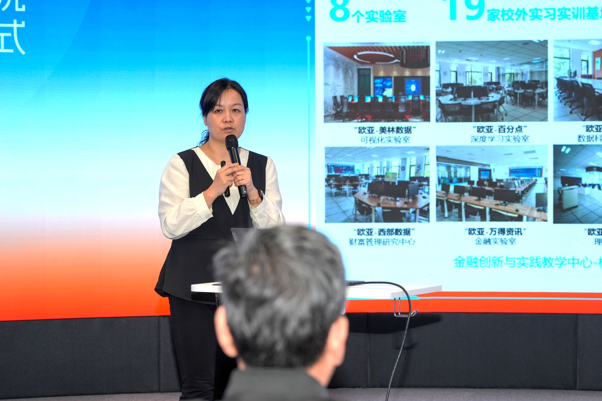 金融与数据科学学院经济统计学专业负责人刘燕从学院的基本情况出发,结合行业动向,对数字金融产业学院进行总体介绍。