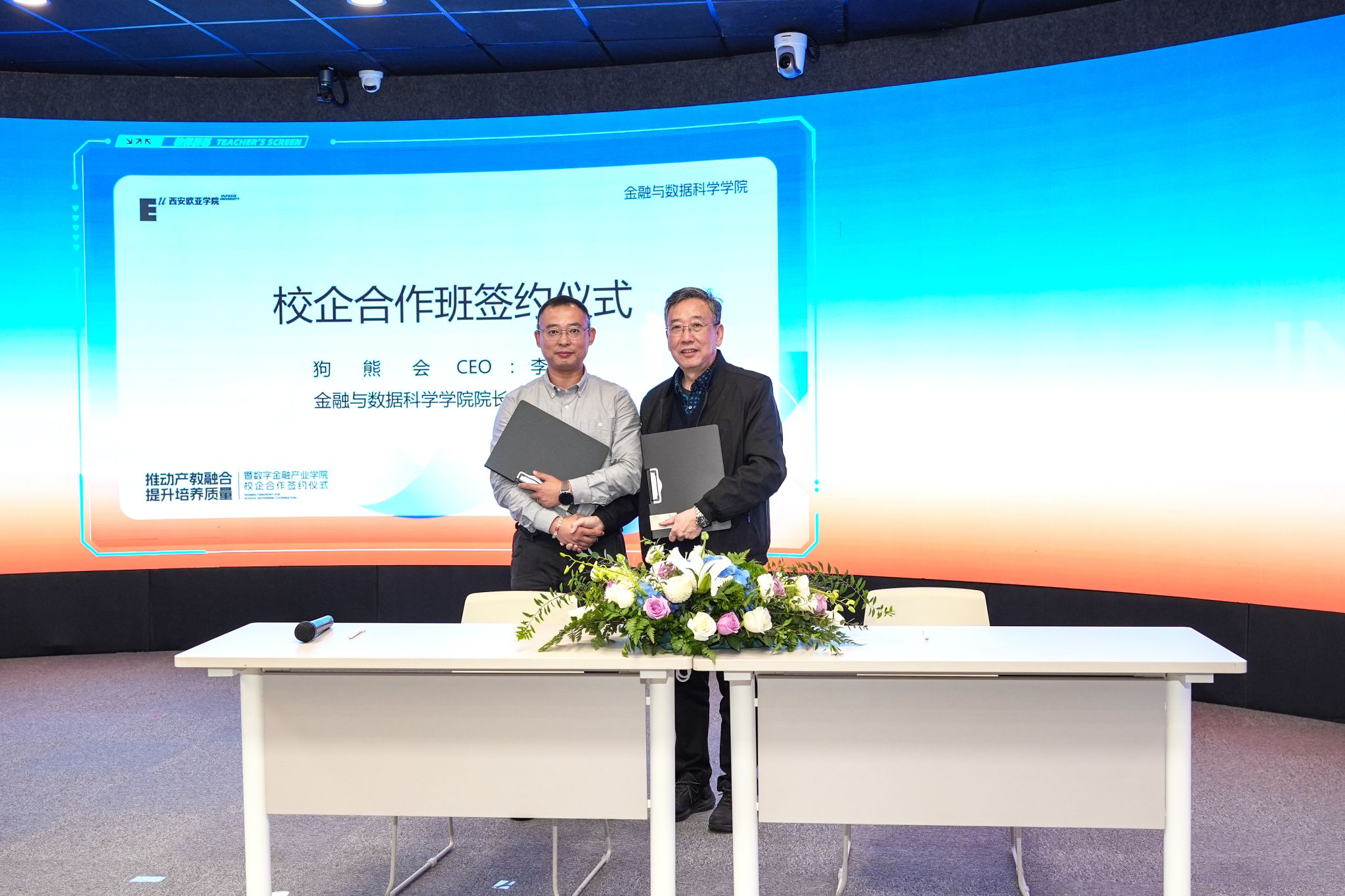 (图四)狗熊会CEO李广雨与学术院长王满仓互换文件签署,圆满达成校企合作班战略合作。