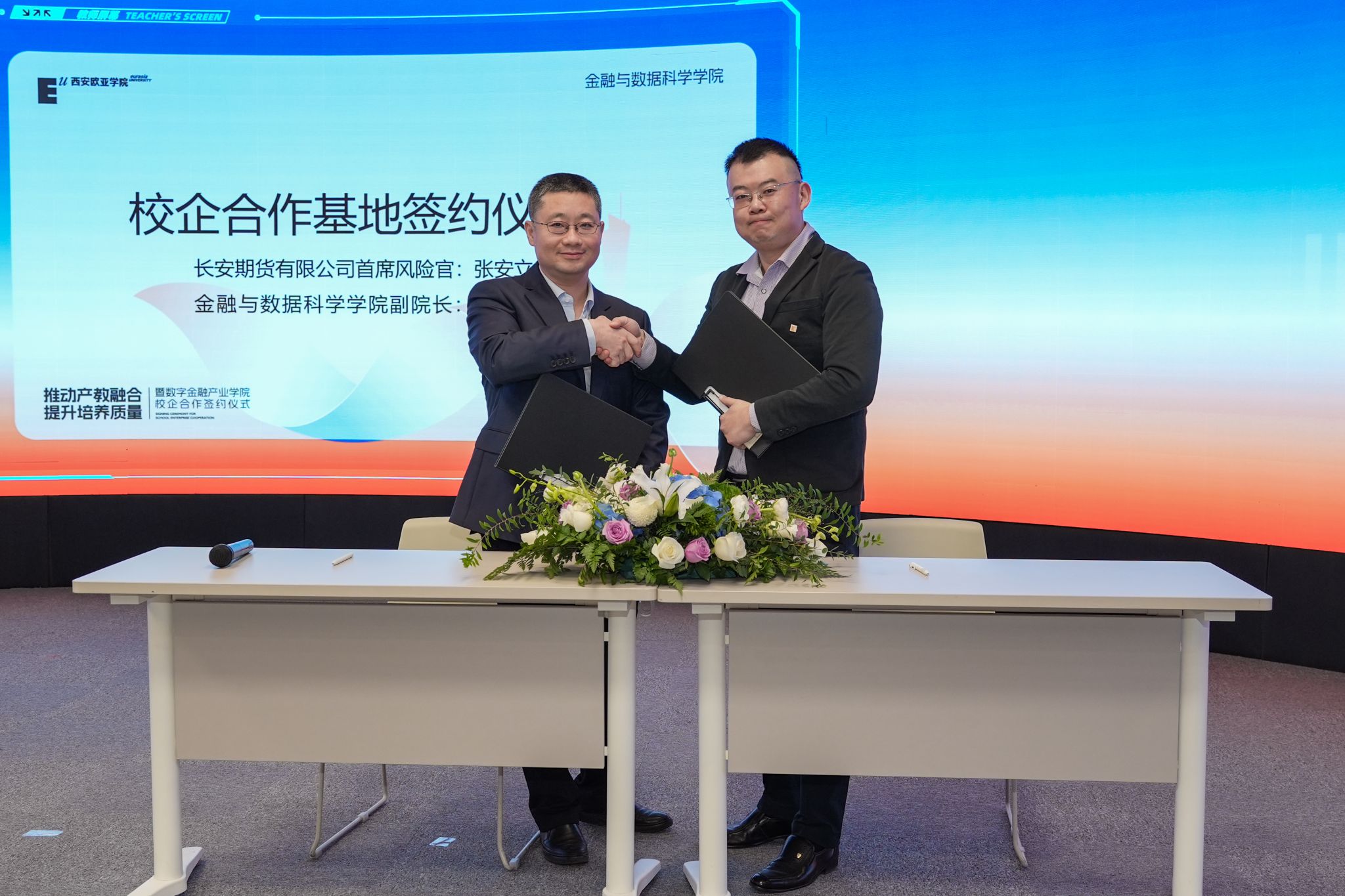 作为一所“应用型”大学,beat365手机版官网始终坚持“深耕以学生为中心的育人体系,全面提升应用型人才培养质量”的教育教学宗旨。11月22日,由金融与数据科学学院主办,长安期货有限公司、狗熊会、西安金融控股有限公司、深圳市讯方技术股份有限公司、陕西硕科智能技术有限公司等优秀企业参与的“推动产教融合,提升培养质量”暨数字金融产业学院校企合作签约仪式在beat365手机版官网成功举办。