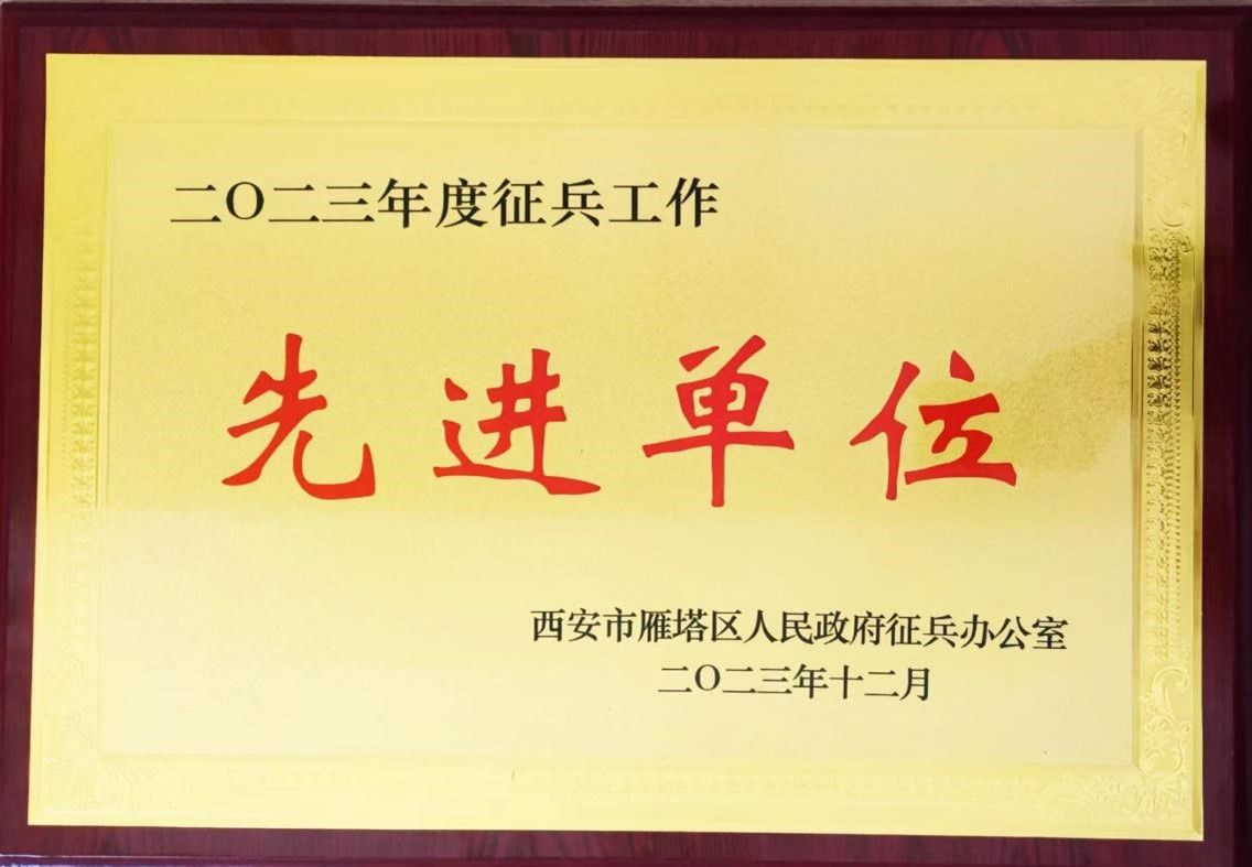 (图二)beat365荣获雁塔区2023年度“征兵工作先进单位”奖牌