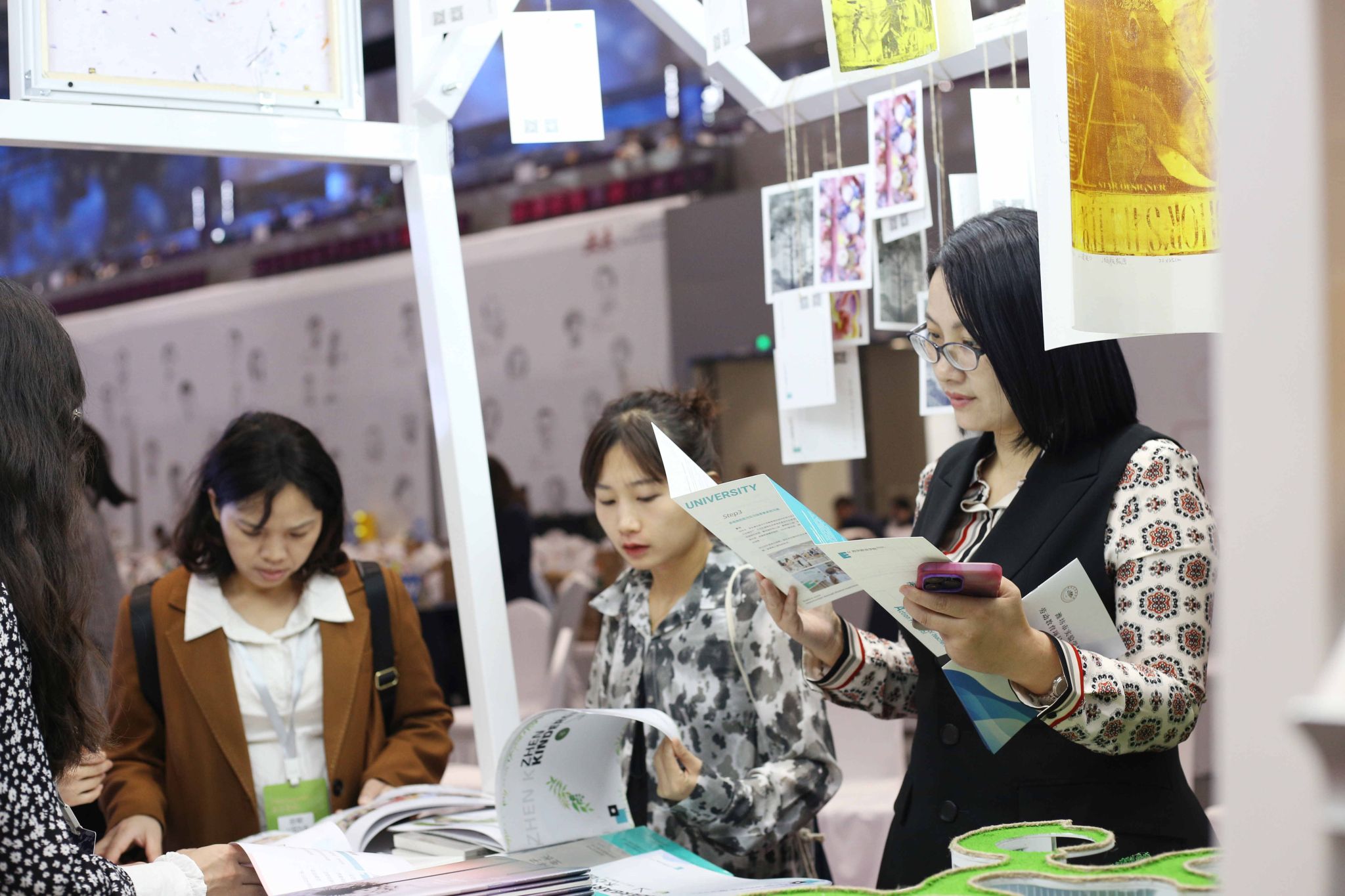 来自浙江教育局的参会老师则在摊位前详细了解了学院的人才培养理念,他认为五力模型的提出非常前沿,“未来教师的培养理念具有重要的启发作用,也对我们引进教师人才的实践给出了参考。”