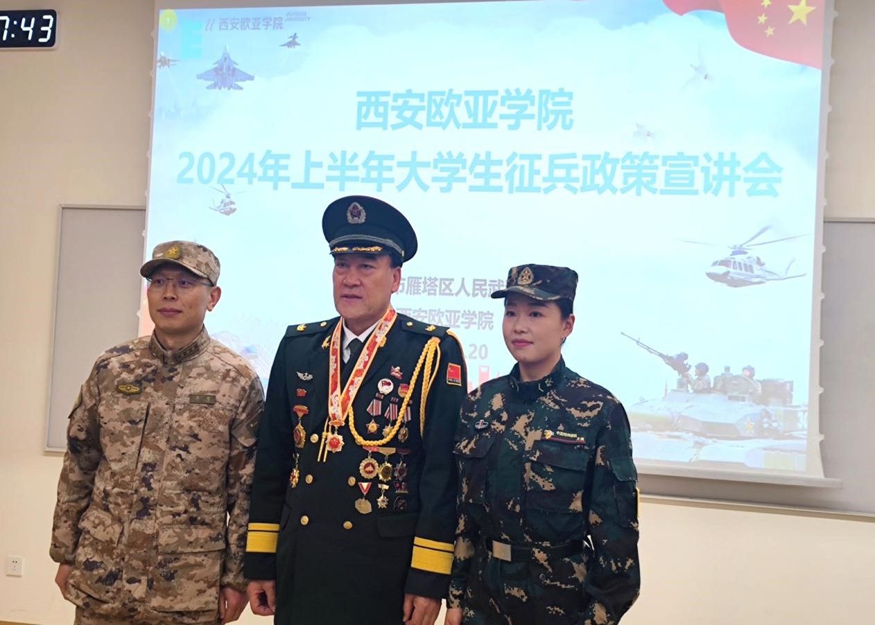 会上,李刚政委围绕征集条件、参军优待政策、西安市参军八大优势等方面内容解读2024年征兵政策,重点从政治荣誉、学业保障、经济优待、就业保障、成长进步、大学生参军入伍优势六个方面进行政策讲解。李刚政委为在座的同学讲述了报名参军的基本条件、2024年雁塔区参军入伍优待政策,也同时进行了各类热点问题的解答。